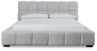 A divine merger of casual and contemporary design, this king upholstered bed is the upgrade you've been dreaming of. Plush, deep pillowed tufting creates an impressive silhouette that's just as comfortable as it is stylish. And the textured light gray Next-Gen Nuvella™ performance fabric is soft and easy to clean. Now there's a bed with staying power.