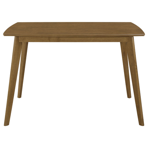 Coaster Z2 StandardMid-century modern-inspired, this five piece dining set welcomes a hint of retro pizzazz. In a natural walnut hue, the sleek table is given depth b...