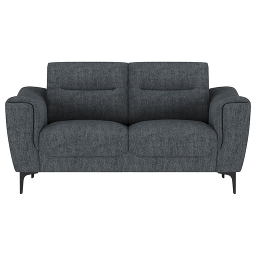 Coaster Z2 StandardIndulge in effortless style and comfort with this chic transitional loveseat. Soft charcoal upholstery gracefully harmonizes with any décor, while...