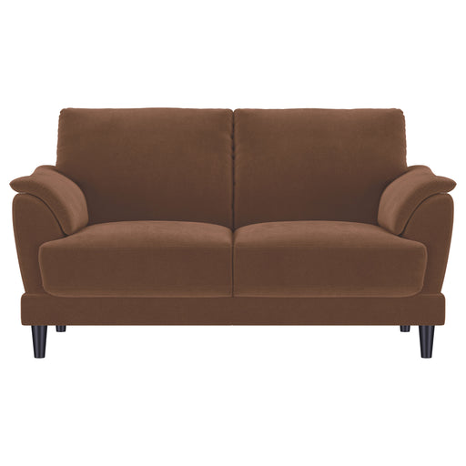Coaster Z2 StandardThe loveseat blends chic architectural elements with cozy sophistication, wrapped in latte chenille upholstery for a soft, textured feel. Its round...